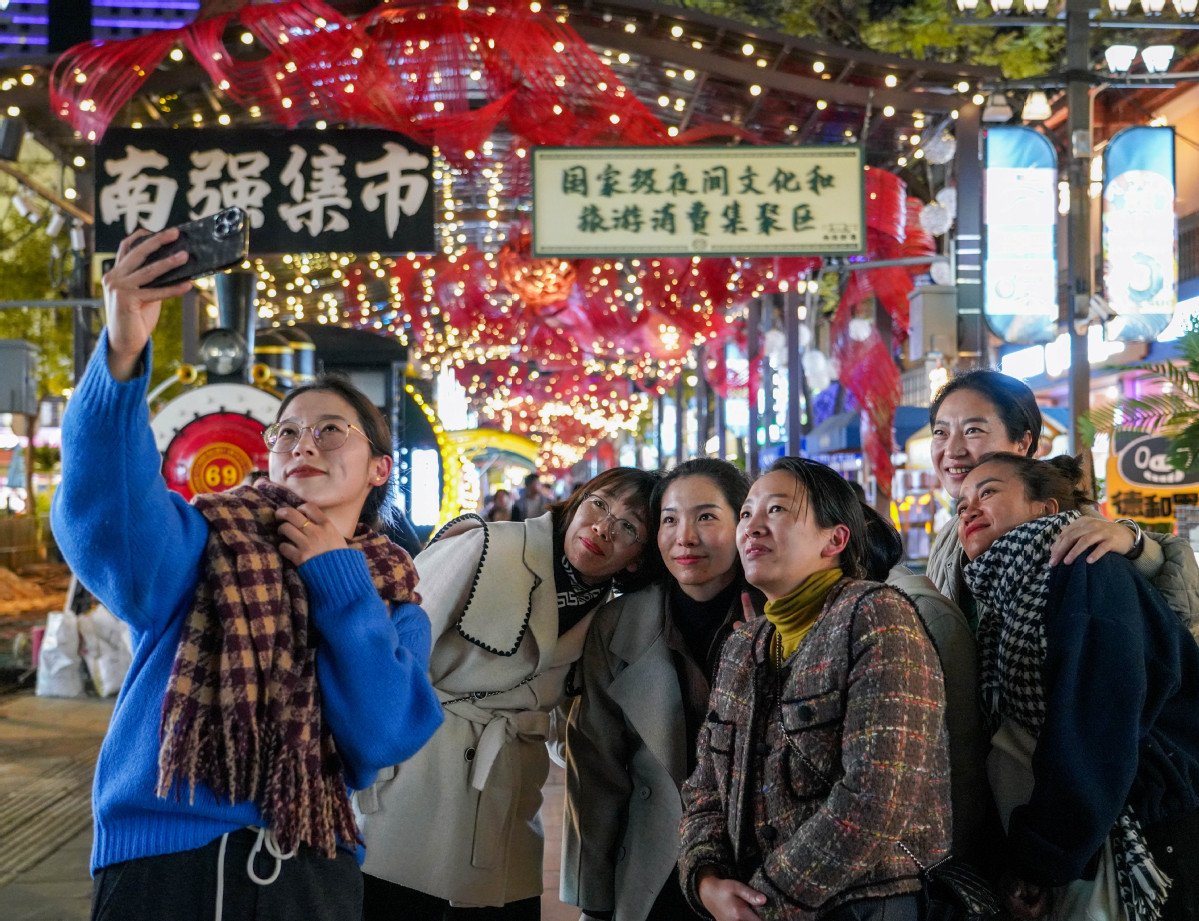 Turistas disfrutan la noche en Kunming, provincia de Yunnan, 6 de diciembre del 2024. [Foto: Xinhua]