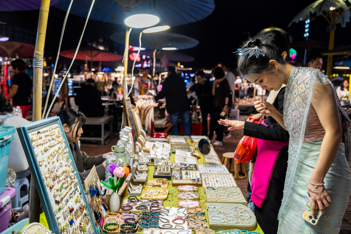 Turistas recorren el mercado nocturno de Jinghong, Prefectura Autónoma de Xishuangbanna Dai, provincia de Yunnan, 7 de diciembre del 2024. [Foto: Xinhua]