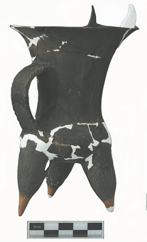 Un recipiente de barro para beber desenterrado del cementerio. [Foto proporcionada a China Daily]