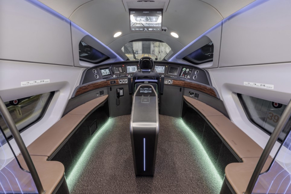 | La fotografía muestra una cabina de conducción dentro de un prototipo de tren bala CR450. |