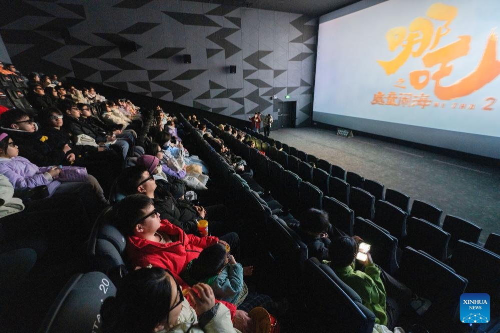 Personas ven una película en un cine, en el distrito de Feidong, en la ciudad de Hefei, en la provincia de Anhui, en el este de China, el 3 de febrero de 2025. La industria cinematográfica de China marcó un nuevo hito durante las vacaciones de la Fiesta de la Primavera de 2025, con ingresos de taquilla entre el 29 de enero y el 1 de febrero que alcanzaron un récord de 5.750 millones de yuanes (unos 802 millones de dólares), superando el máximo anterior de 5.730 millones de yuanes en 2021. (Xinhua/Ruan Xuefeng)