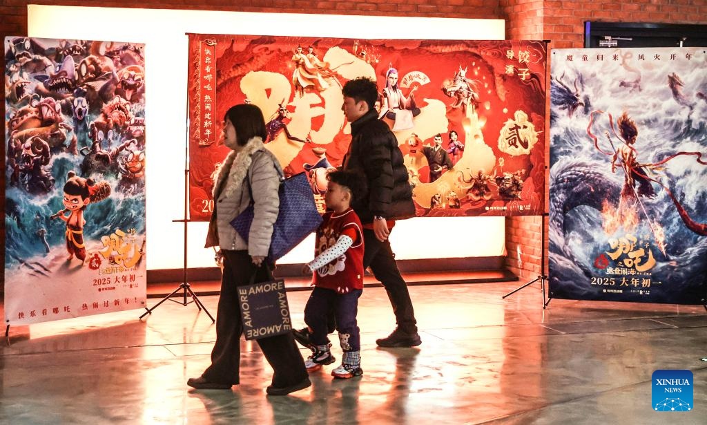 Personas ingresan a un cine, en Shenyang, en la ciudad de Hefei, en la provincia de Liaoning, en el noreste de China, el 3 de febrero de 2025. La industria cinematográfica de China marcó un nuevo hito durante las vacaciones de la Fiesta de la Primavera de 2025, con ingresos de taquilla entre el 29 de enero y el 1 de febrero que alcanzaron un récord de 5.750 millones de yuanes (unos 802 millones de dólares), superando el máximo anterior de 5.730 millones de yuanes en 2021. (Xinhua/Pan Yulong)