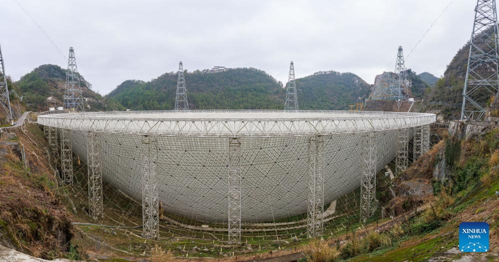 Imagen del 18 de febrero de 2025 del Radiotelescopio Esférico de Apertura de Quinientos Metros (FAST, por sus siglas en inglés) de China en mantenimiento, en la provincia de Guizhou, en el suroeste de China. En los últimos a?os, Guizhou ha aprovechado sus recursos de investigación científica como el FAST para desarrollar viajes educativos por la ciencia, una opción favorable en toda China para las mentes inquisitivas que buscan embarcarse en un viaje de conocimiento y exploración en la ciencia. Por ejemplo, FAST, el radiotelescopio de un solo plato más grande del mundo, atrajo a 1.298 millones de visitantes para viajes educativos para la ciencia en 2024. (Xinhua/Liu Xu)
