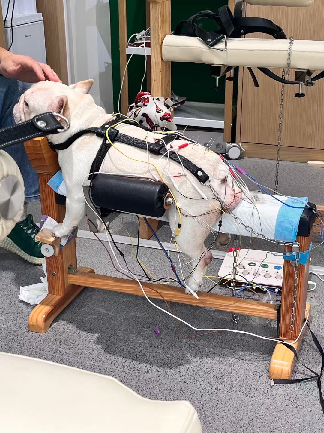 "La medicina moderna suele emplear la descompresión quirúrgica para tratar una hernia discal. Sin embargo, la medicina moderna no puede hacer mucho para la parálisis de nivel cinco con pérdida de la sensibilidad al dolor profundo que dura más de 48 horas. Para estos casos, hemos establecido una terapia de acupuntura basada en el diagnóstico mediante pruebas neurológicas modernas, resonancias magnéticas o tomografías computarizadas, y, en algunas ocasiones, es incluso más eficaz que la cirugía", explicó Chen Wu, profesora de la Universidad de Agricultura de Beijing y experta principal en medicina tradicional china y occidental integrada del Grupo de Atención Sanitaria para Mascotas New Ruipeng, a Zhang cuando llevó a Dou Dou a su primera consulta.