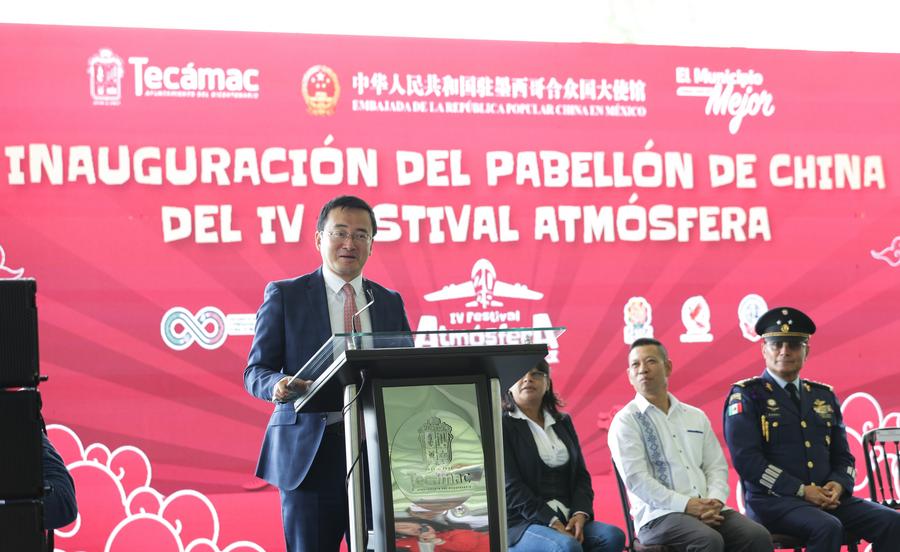 Imagen del 22 de marzo de 2025 del encargado de Negocios de la Embajada de China en México, Zhu Jian, hablando durante la inauguración del Pabellón de China en el Festival Atmósfera 2025, en el que China es el país invitado, en el municipio de Tecámac, México. (Xinhua/Francisco Ca?edo)