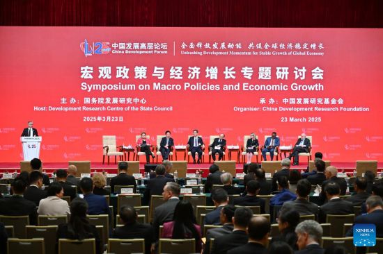 BEIJING, 23 marzo, 2025 (Xinhua) -- Imagen del 23 de marzo de 2025 del Simposio en Macro Políticas y Crecimiento Económico del Foro de Desarrollo de China 2025, en Beijing, capital de China. El Foro de Desarrollo de China 2025 está programado del 23 al 24 de marzo. El tema del evento de este a?o es "Desatando el impulso del desarrollo para un crecimiento estable de la economía global". (Xinhua/Li Xin)