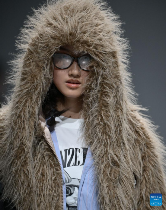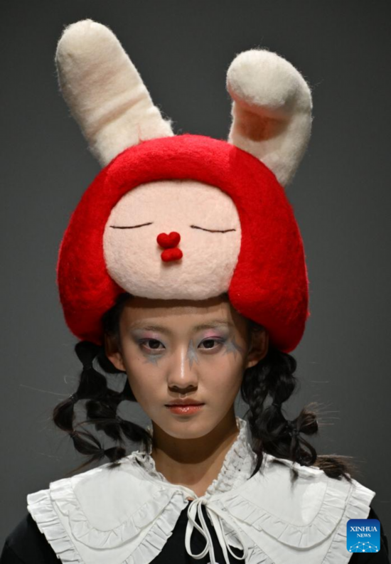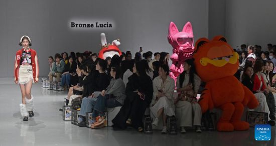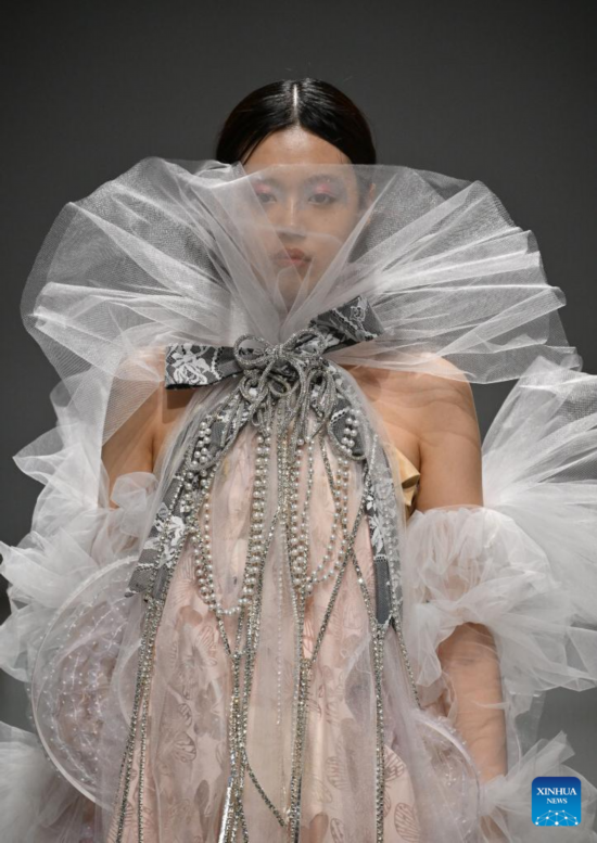 BEIJING, 23 marzo, 2025 (Xinhua) -- Una modelo presenta una creación de Bronze Lucia durante la Semana de la Moda China 2025 (Primavera), en Beijing, capital de China, el 23 de marzo de 2025. (Xinhua/Cai Yang)