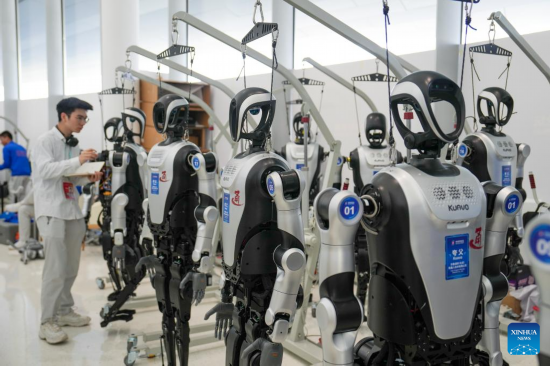 BEIJING, 27 marzo, 2025 (Xinhua) -- Un maquinista depura robots humanoides en el Centro Internacional de Innovación Zhongguancun, sede de la Conferencia Anual del Foro Zhongguancun 2025 (Foro ZGC), en Beijing, capital de China, el 27 de marzo de 2025. Bajo el lema "Nuevas fuerzas productivas de calidad y cooperación tecnológica global", la conferencia anual del foro de este a?o presenta las últimas tecnologías y productos en robots humanoides. (Xinhua/Ju Huanzong)