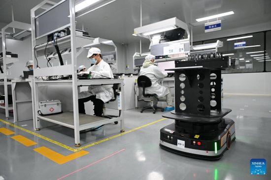 SHIJIAZHUANG, 31 marzo, 2025 (Xinhua) -- Imagen del 26 de marzo de 2025 de un robot transportando materiales en un taller en una base piloto de pruebas, en la Nueva Area de Xiong'an, en la provincia de Hebei, en el norte de China. Desde que China anunció sus planes para establecer la Nueva Area de Xiong'an en abril de 2017, esta ha evolucionado desde un proyecto a una ciudad vibrante. La Nueva Area de Xiong'an ha sido dise?ada para asumir funciones transferidas desde Beijing que no son esenciales para su papel como capital de China. En Xiong'an, considerada la "ciudad del futuro" de China, la innovación científica y tecnológica y el desarrollo industrial se impulsan mutuamente de forma sinérgica. El Parque Científico de Zhongguancun en Xiong'an ha atraído a más de 140 empresas. El centro de innovación científica y tecnológica de la nueva área ha construido un sistema de transformación de logros con una estrecha integración de diversas entidades de innovación. (Xinhua/Mu Yu)
