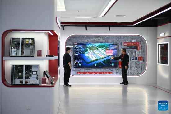 SHIJIAZHUANG, 31 marzo, 2025 (Xinhua) -- Imagen del 19 de marzo de 2025 de empleados de una compa?ía de ciencia y tecnología en el Parque Científico de Zhongguancun demostrando un sistema de operación de seguridad empresarial, en la Nueva Area de Xiong'an, en la provincia de Hebei, en el norte de China. Desde que China anunció sus planes para establecer la Nueva Area de Xiong'an en abril de 2017, esta ha evolucionado desde un proyecto a una ciudad vibrante. La Nueva Area de Xiong'an ha sido dise?ada para asumir funciones transferidas desde Beijing que no son esenciales para su papel como capital de China. En Xiong'an, considerada la "ciudad del futuro" de China, la innovación científica y tecnológica y el desarrollo industrial se impulsan mutuamente de forma sinérgica. El Parque Científico de Zhongguancun en Xiong'an ha atraído a más de 140 empresas. El centro de innovación científica y tecnológica de la nueva área ha construido un sistema de transformación de logros con una estrecha integración de diversas entidades de innovación. (Xinhua/Mu Yu)
