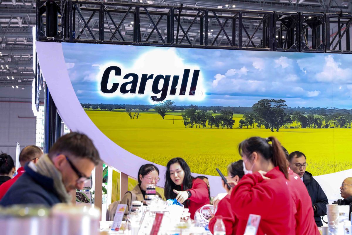 Productos de Cargill se exhiben en la Exposición sobre Ingredientes Alimenticios, celebrada en Shanghai, 19 de marzo del 2025. (Foto: China Daily)