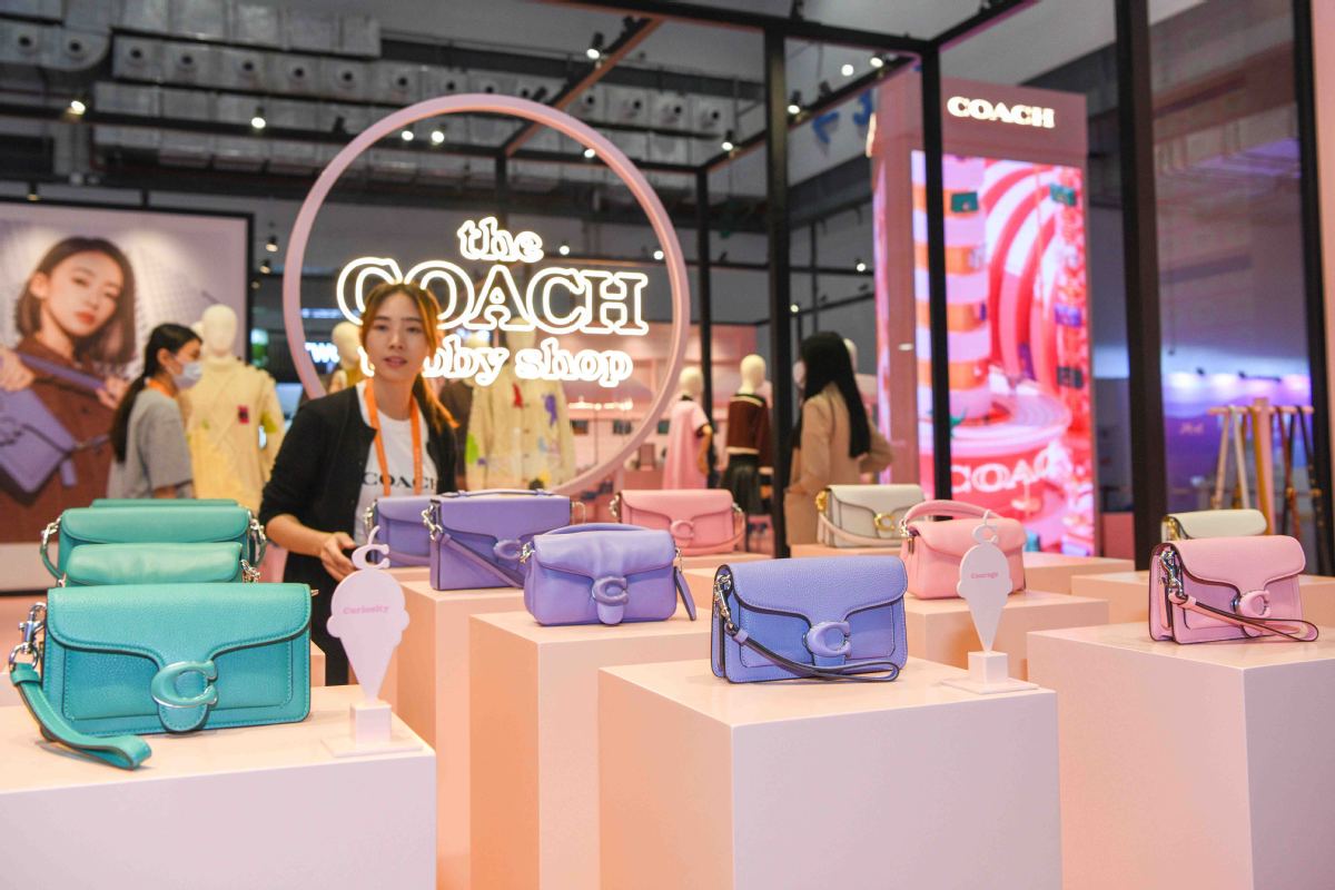 Una empleada organiza exhibiciones en el área de Coach durante la Exposición Internacional de Productos de Consumo de China en Haikou, provincia de Hainan, 10 de abril del 2023. (Foto: Su Bikun/ China Daily)