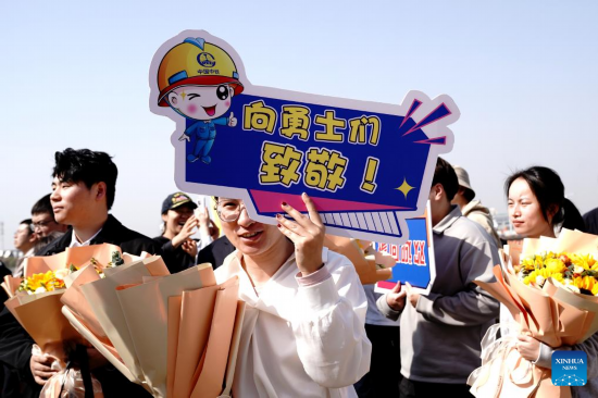 SHANGHAI, 8 abril, 2025 (Xinhua) -- Miembros del 41 equipo de expedición antártica de China desembarcan del rompehielos de investigación Xuelong, o Dragón de Nieve, en un muelle base, en Shanghai, en el este de China, el 8 de abril de 2025. El rompehielos de investigación chino Xuelong, o Dragón de Nieve, llegó a Shanghai el martes, marcando la finalización de misiones clave en la 41a expedición antártica del país, según una conferencia de prensa celebrada el martes. (Xinhua/Zhang Jiansong)