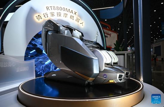 HAIKOU, 11 abril, 2025 (Xinhua) -- Imagen del 10 de abril de 2025 de un robot masajeador en el Centro Internacional de Convenciones y Exposiciones de Hainan, sede principal de la próxima V Exposición Internacional de Productos de Consumo de China (CICPE, por sus siglas en inglés), en Haikou, capital de la provincia de Hainan, en el sur de China. La V CICPE, que presenta ocho salas de exposición, esta agendada del 13 al 18 de abril aquí. La exposición, una plataforma clave para el comercio mundial y tendencias de consumo, ha atraído la participación de más de 4,100 marcas de 71 países y regiones. (Xinhua/Pu Xiaoxu)