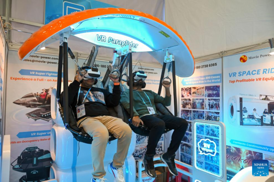 GUANGZHOU, 15 abril, 2025 (Xinhua) -- Personas prueban un producto de realidad virtual durante la 137 edición de la Feria de Importación y Exportación de China, en Guangzhou, en la provincia de Guangdong, en el sur de China, el 15 de abril de 2025. La 137 edición de la Feria de Importación y Exportación de China, también conocida como la Feria de Cantón, comenzó el martes, con el número de expositores de exportación superando los 30.000 por primera vez en la historia de este famoso evento. (Xinhua/Xiao Ennan)
