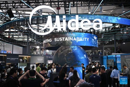 GUANGZHOU, 15 abril, 2025 (Xinhua) -- Imagen del 15 de abril de 2025 del estand del Grupo Midea de China durante la 137 edición de la Feria de Importación y Exportación de China, en Guangzhou, en la provincia de Guangdong, en el sur de China. La 137 edición de la Feria de Importación y Exportación de China, también conocida como la Feria de Cantón, comenzó el martes, con el número de expositores de exportación superando los 30.000 por primera vez en la historia de este famoso evento. (Xinhua/Deng Hua)