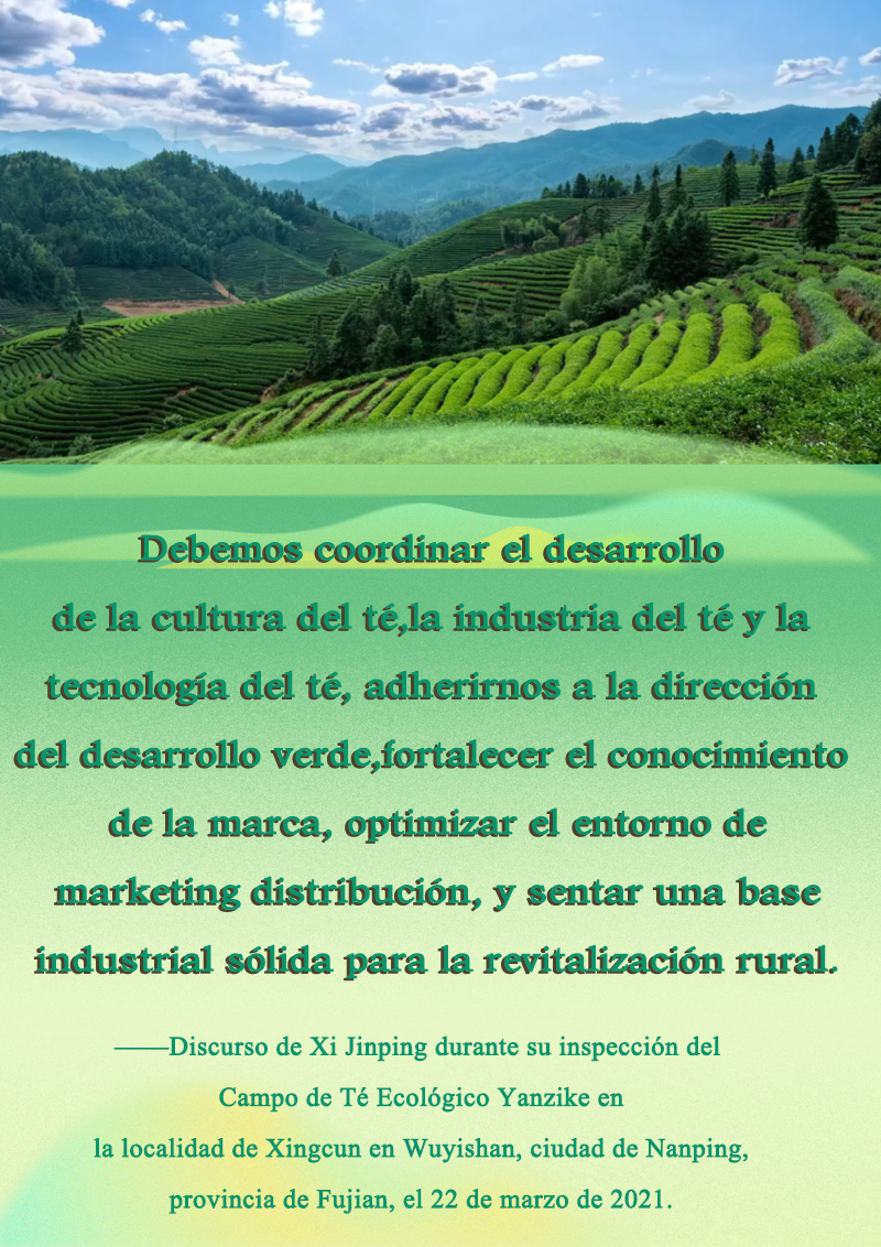 ——Discurso de Xi Jinping durante su inspección del Campo de Té Ecológico Yanzike en la localidad de Xingcun en Wuyishan, ciudad de Nanping, provincia de Fujian, el 22 de marzo de 2021.