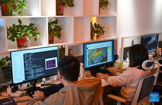 TIANJIN, 21 abril, 2025 (Xinhua) -- Imagen del 18 de abril de 2025 de empleados desarrollando un software industrial en una compa?ía de software, en Tianjin, en el norte de China. En los últimos a?os, un grupo de empresas basadas en tecnología digital han fomentado su desarrollo en un parque industrial de economía digital en Tianjin, inyectando impulso al desarrollo de alta calidad de la economía local. (Xinhua/Sun Fanyue)