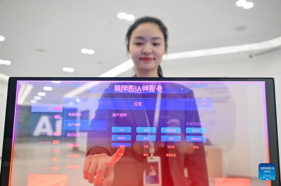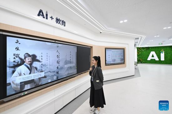 TIANJIN, 21 abril, 2025 (Xinhua) -- Imagen del 18 de abril de 2025 de una empleada mostrando productos de Inteligencia Artificial aplicados al campo de la educación en la sucursal de Tianjin de iFLYTEK, en Tianjin, en el norte de China. En los últimos a?os, un grupo de empresas basadas en tecnología digital han fomentado su desarrollo en un parque industrial de economía digital en Tianjin, inyectando impulso al desarrollo de alta calidad de la economía local. (Xinhua/Sun Fanyue)