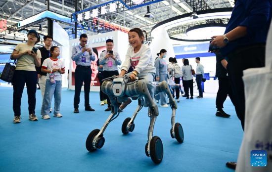 HEFEI, 26 abril, 2025 (Xinhua) -- Una ni?a monta un robot en la 3a Feria de Transformación de Logros de Innovación en Ciencia y Tecnología de China (Anhui), en Hefei, capital de la provincia de Anhui, en el este de China, el 26 de abril de 2025. Comenzando el sábado y cubriendo una superficie total de exposición de 20.000 metros cuadrados, la feria ha atraído a más de 2.000 empresas y cerca de 200 universidades. Se han establecido seis zonas de exposición para mostrar los últimos logros científicos y tecnológicos de todo el mundo. Diez eventos de emparejamiento de cooperación, incluyendo presentaciones itinerantes y actividades comerciales, también se celebrarán para promover la comercialización de proyectos científicos y tecnológicos. (Xinhua/Zhou Mu)
