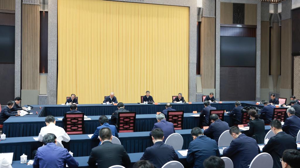 El presidente chino, Xi Jinping, también secretario general del Comité Central del Partido Comunista de China (PCCh) y presidente de la Comisión Militar Central, preside un simposio sobre el desarrollo económico y social de China en el período del XV Plan Quinquenal (2026-2030) y pronuncia un importante discurso, en Shanghai, en el este de China, el 30 de abril de 2025. (Xinhua/Ding Lin)