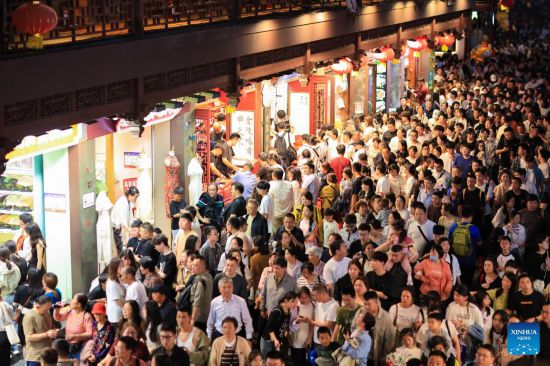 NANJING, 6 mayo, 2025 (Xinhua) -- Imagen del 1 de mayo de 2025 de turistas visitando el área escénica del Templo Fuzi (Confucio), en Nanjing, en la provincia de Jiangsu, en el este de China. Los viajeros chinos realizaron 314 millones de viajes internos y gastaron 180.300 millones de yuanes (unos 25.000 millones de dólares) del 1 al 5 de mayo, lo que representa incrementos interanuales del 6,4 por ciento y 8 por ciento respectivamente, de acuerdo con cifras oficiales. (Xinhua/Su Yang)