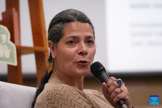 BOGOTA, 8 mayo, 2025 (Xinhua) -- Imagen del 7 de mayo de 2025 de la sinóloga colombiana, Lina Luna, hablando durante el lanzamiento del libro "Charlas sobre China" en el marco de la Feria Internacional del Libro de Bogotá (FilBo) 2025, en el recinto ferial Corferias, en la ciudad de Bogotá, capital de Colombia. El libro "Charlas sobre China", un compendio sobre el país asiático a cargo de cuatro expertos en los ámbitos cultural, político y comercial, fue lanzado el miércoles en el marco de la FilBo 2025 que se lleva a cabo en el recinto ferial de la capital colombiana. (Xinhua/Andrés Moreno)