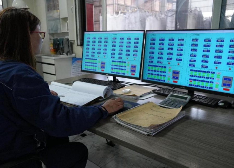 Una trabajadora supervisa la producción en la sala de control central. [Foto proporcionada a chinadaily.com.cn]