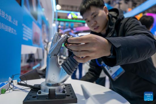 HARBIN, 17 mayo, 2025 (Xinhua) -- Una mano robótica es vista en la 34 Feria Internacional de Economía y Comercio de Harbin, en Harbin, capital de la provincia de Heilongjiang, en el noreste de China, el 17 de mayo de 2025. La feria se inauguró aquí el sábado, atrayendo a expositores de más de 110 países y regiones. (Xinhua/Zhang Tao)