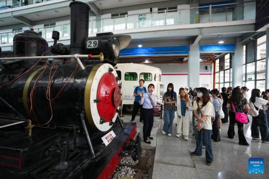 KUNMING, 17 mayo, 2025 (Xinhua) -- Imagen del 16 de mayo de 2025 de personas visitando el Museo del Ferrocarril de Yunnan, en Kunming, en la provincia de Yunnan, en el suroeste de China. Ubicado en la Estación del Ferrocarril Norte de Kunming, el Museo del Ferrocarril de Yunnan toma la historia centenaria del desarrollo del ferrocarril de Yunnan como la historia principal para narrar la vertiginosa evolución de los estándares de ancho de vía, desde el ancho de vía métrico hasta el ancho de vía en pulgadas y el ancho de vía estándar, así como las tecnologías ferroviarias desde las locomotoras de vapor hasta los ferrocarriles de alta velocidad. (Xinhua/Chen Xinbo)