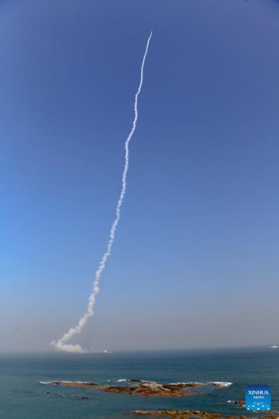 China lanzó hoy lunes un cohete portador CERES-1 desde las aguas cercanas a la provincia de Shandong, en el este de China, colocando cuatro nuevos satélites en la órbita planificada.
