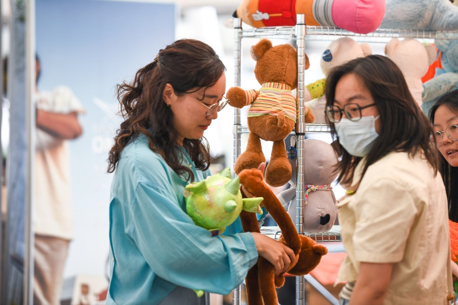 El 11 de mayo del 2025, ciudadanos de Nanjing compran productos de exportación reorientados para la venta nacional que se exhiben en la exposición especial "Gira de Productos Chinos de Calidad de Comercio Exterior" en Nanjing. (Foto: VCG)