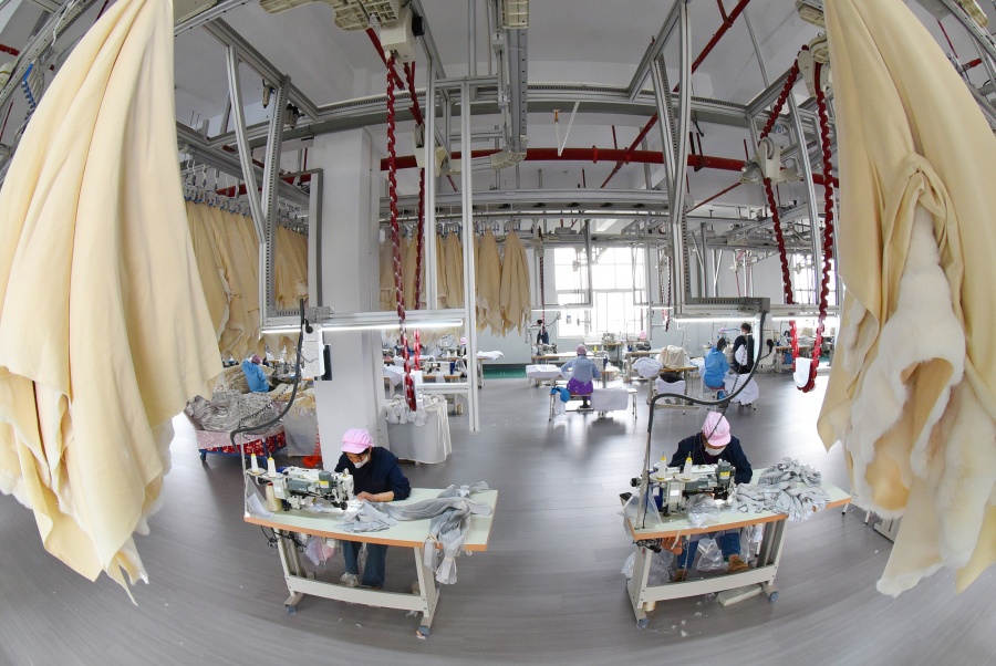 El 17 de abril del 2025, en el taller de producción de Lianyungang Jindian Textile Technology Co., Ltd. en el Parque Industrial de Haizhou, de la Zona de Alta Tecnología de Lianyungang, los trabajadores se apresuran para completar un lote de mantas reorientadas a su venta en el mercado interno. (Foto:VCG)