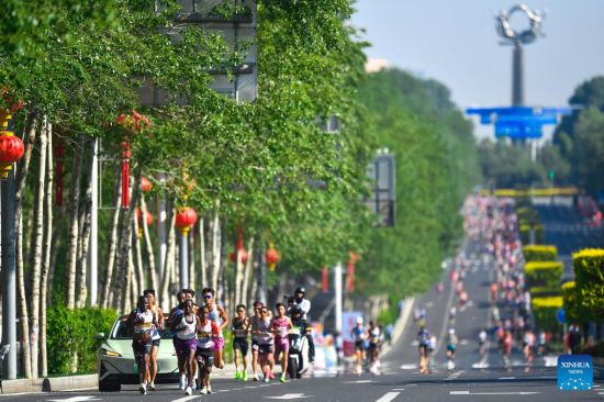 CHANGCHUN, 25 mayo, 2025 (Xinhua) -- Corredores compiten durante el Maratón de Hongqi Changchun 2025, en Changchun, en la provincia de Jilin, en el noreste de China, el 25 de mayo de 2025. (Xinhua/Zhang Nan)