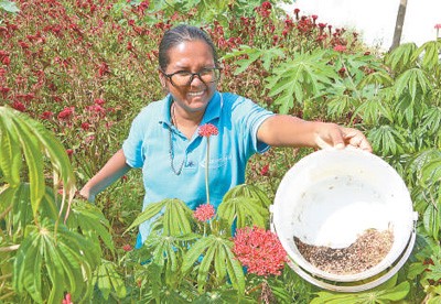 En el campo experimental del Centro de Cooperación Técnica Agrícola de Surinam, que funciona con ayuda de China, Sharina muestra las semillas de cultivo que recogió. (Foto: Ernesto Domingos/ Diario del Pueblo)