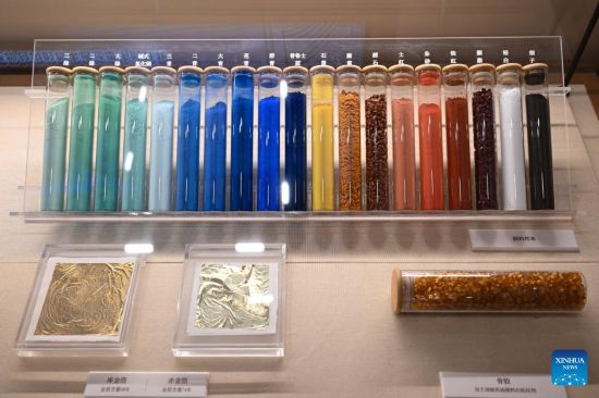 BEIJING, 27 mayo, 2025 (Xinhua) -- Imagen del 26 de mayo de 2025 de materiales de pintura exhibidos durante la exposición titulada "Un legado milenario de Caihua: Herencia e Innovación en la Pintura Policromada Arquitectónica China de Estilo Oficial", celebrada en el Museo del Palacio, en Beijing, capital de China. La exposición, abierta oficialmente al público el martes, exhibe 43 piezas de antiguos objetos Caihua chinos y obras de arte Caihua de estudiantes apoyados por el Fondo Nacional de las Artes de China. (Xinhua/Jin Liangkuai)