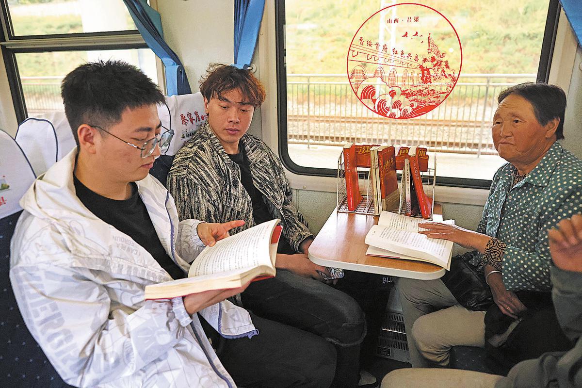 Pasajeros leen libros de temática roja en el Expreso Rojo Caijiaya. (Foto: Zhu Xingxin/ China Daily)