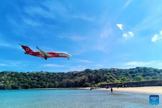 SHANGHAI, 28 junio, 2025 (Xinhua) -- Imagen del 19 de abril de 2025 de un avión de pasajeros C909 aterrizando en el Aeropuerto de Con Dao, Vietnam. Dos aviones C909, arrendados por Chengdu Airlines a Vietjet Air de Vietnam, comenzaron a operar el 19 de abril de 2025. El sábado se cumple el noveno aniversario de la operación comercial del avión de pasajeros regional C909 desarrollado por China. Hasta la fecha, se han entregado 166 aviones C909 que han realizado más de 24 millones de viajes de pasajeros. (Xinhua)