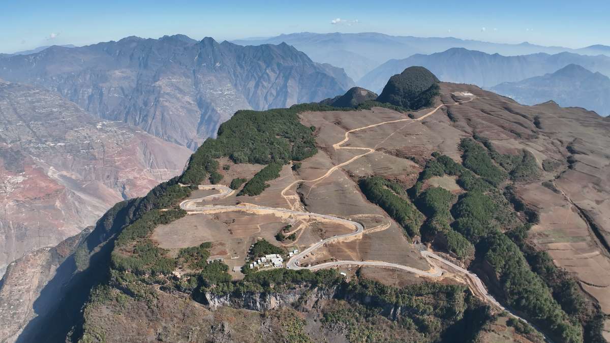 Vista aérea de la aldea de Xuanya, en el condado Zhaojue, prefectura autónoma Yi de Liangshan, provincia de Sichuan. [Foto proporcionada a chinadaily.com.cn]
