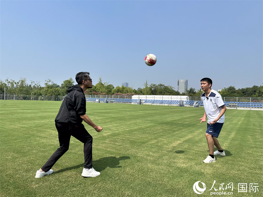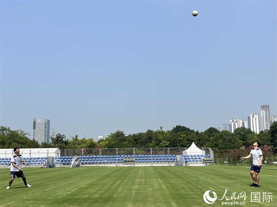 Jugadores de "pu?obol" entrenan en la sede de la competencia de los Juegos Mundiales 2025, programados del 7 al 17 de agosto en Chengdu, capital de la provincia de Sichuan. (Foto: Diario del Pueblo digital/ Sun Shuyu)