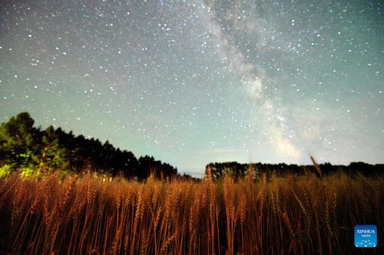 HARBIN, 3 agosto, 2025 (Xinhua) -- Imagen del 27 de julio de 2025 de un campo de trigo bajo el cielo estrellado, en la ciudad de Heihe, en la provincia de Heilongjiang, en el noreste de China. La provincia de Heilongjiang, un productor agrícola principal denominado "el granero de China", ha visto sus cosechas entrar en la etapa de maduración recientemente. (Xinhua/Qian Boyu)