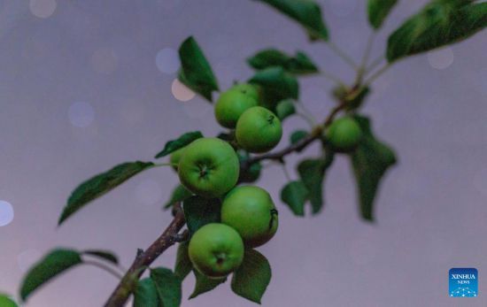 HARBIN, 3 agosto, 2025 (Xinhua) -- Imagen del 25 de julio de 2025 de manzanas bajo el cielo estrellado, en el distrito de Tangyuan de la ciudad de Jiamusi, en la provincia de Heilongjiang, en el noreste de China. La provincia de Heilongjiang, un productor agrícola principal denominado "el granero de China", ha visto sus cosechas entrar en la etapa de maduración recientemente. (Xinhua/Chen Zhiguo)