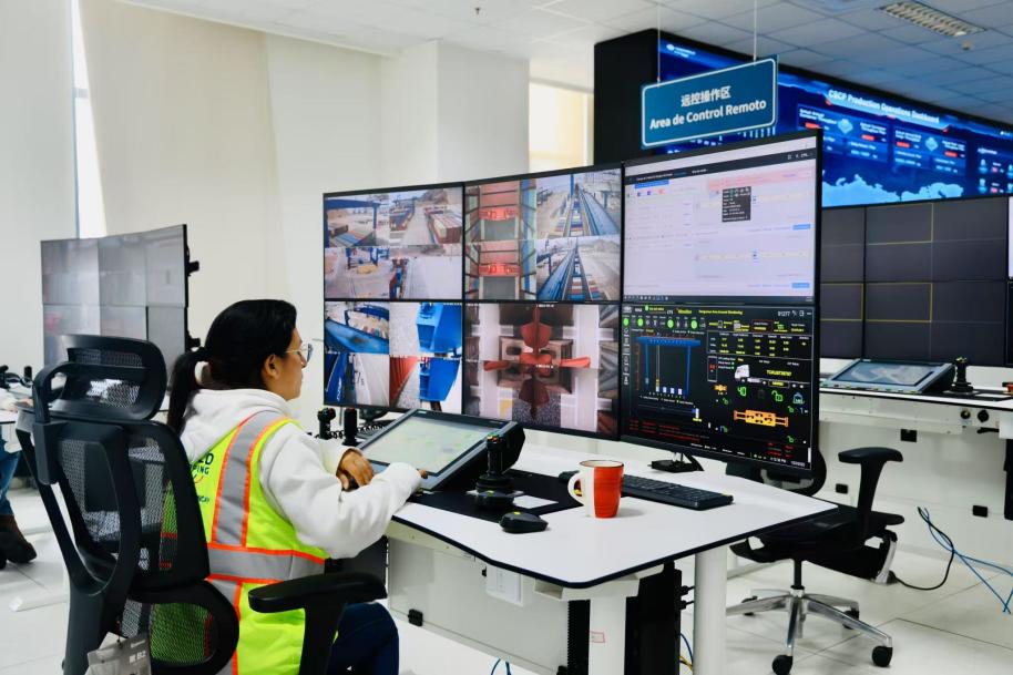 Una empleada local opera el equipo de forma remota. Foto: Song Yiran, Diario del Pueblo.