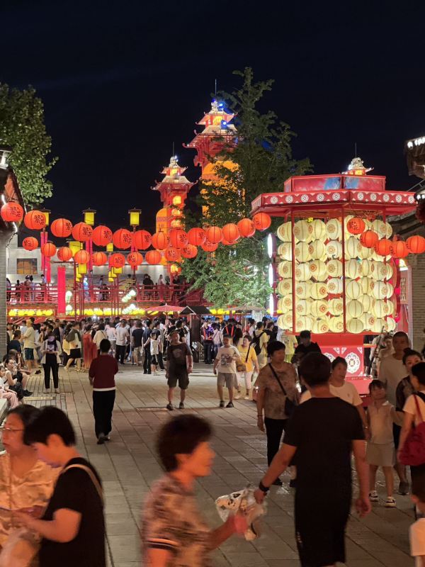 Calles abarrotadas de gente disfrutando de una noche de verano con espectáculos y gastronomía local en el centro de Tangshan, provincia de Hebei, a 13 de agosto de 2025. Foto por álvaro Lago, Diario del Pueblo digital.