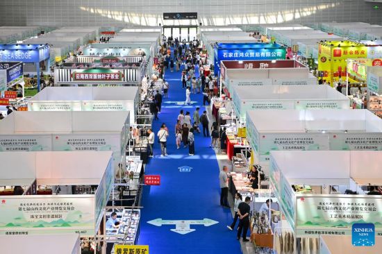 TAIYUAN, 21 agosto, 2025 (Xinhua) -- Personas visitan la 7a Feria de Industrias Culturales de Shanxi, en Taiyuan, en la provincia de Shanxi, en el norte de China, el 21 de agosto de 2025. La feria comenzó aquí el jueves y durará hasta el 25 de agosto, atrayendo a aproximadamente 2.000 expositores de más de 30 países y regiones de todo el mundo. (Xinhua/Yang Chenguang)