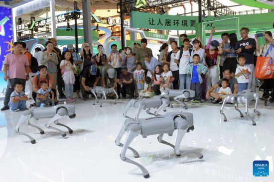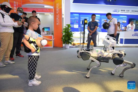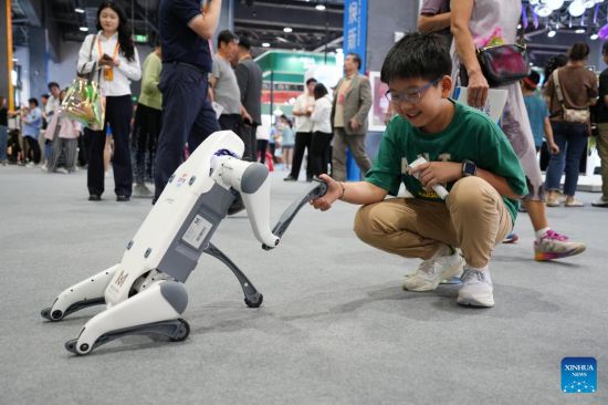 BEIJING, 13 septiembre, 2025 (Xinhua) -- Un ni?o interactúa con un perro robot en la Feria Internacional de Comercio de Servicios de China (CIFTIS, por sus siglas en inglés) 2025, en el parque Shougang, en Beijing, capital de China, el 13 de septiembre de 2025. La CIFTIS 2025 está abierta al público en general del 13 al 14 de septiembre. Los visitantes con reservación pueden acceder a la feria de forma gratuita. (Xinhua/Zhang Xinjing)