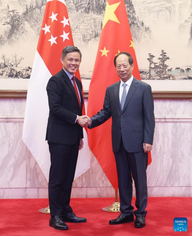 Shi Taifeng, alto funcionario del Partido Comunista de China (PCCh), se reunió hoy miércoles en Beijing con Chan Chun Sing, ministro coordinador de Servicios Públicos y ministro de Defensa de Singapur.