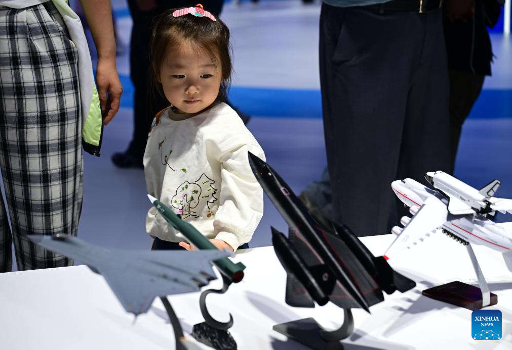 HEFEI, 20 septiembre, 2025 (Xinhua) -- Una ni?a observa modelos de aviones exhibidos durante la Convención Mundial de Manufactura (CMM) 2025, en Hefei, en la provincia de Anhui, en el este de China, el 20 de septiembre de 2025. Bajo el lema "Manufactura inteligente para un futuro mejor", la CMM 2025 comenzó aquí el sábado. (Xinhua/Zhou Mu)