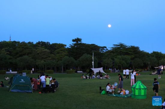 BEIJING, 6 octubre, 2025 (Xinhua) -- Personas admiran la luna llena en un campamento, en Shenzhen, en la provincia de Guangdong, en el sur de China, el 6 de octubre de 2025. Personas participaron en diversos eventos culturales folclóricos tradicionales el lunes para celebrar el Festival del Medio Oto?o. (Xinhua/Mao Siqian)