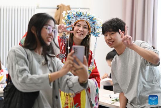 BEIJING, 6 octubre, 2025 (Xinhua) -- Estudiantes chinos e internacionales participan en un evento con motivo del Festival del Medio Oto?o en la Universidad Normal de Tianjin, en Tianjin, en el norte de China, el 6 de octubre de 2025. Personas participaron en diversos eventos culturales folclóricos tradicionales el lunes para celebrar el Festival del Medio Oto?o. (Xinhua/Li Ran)